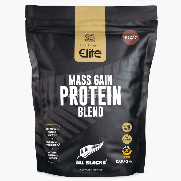 Healthspan Elite All Blacks - Mass gain csokoládé ízesítésű szénhidrát és fehérje keverék italpor édesítőszerrel.