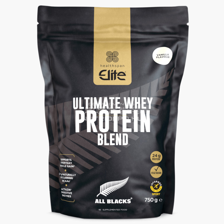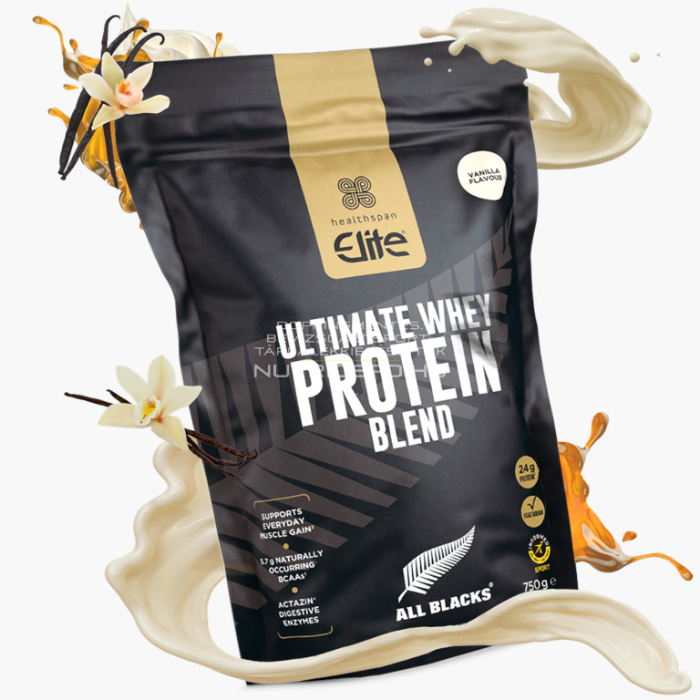 Healthspan Elite All Blacks - Ultimate vanília ízesítésű fehérjekeverék italpor édesítőszerrel.